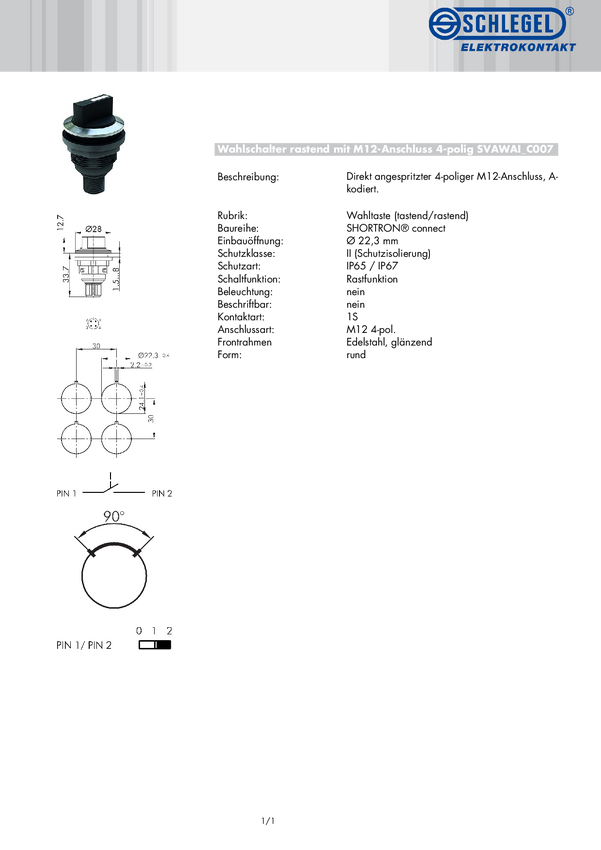 Schlegel SVAWAI_C007 SVAWAI_C007 Przełącznik ścienny manualne, przełącznik obrotowy 1 szt.