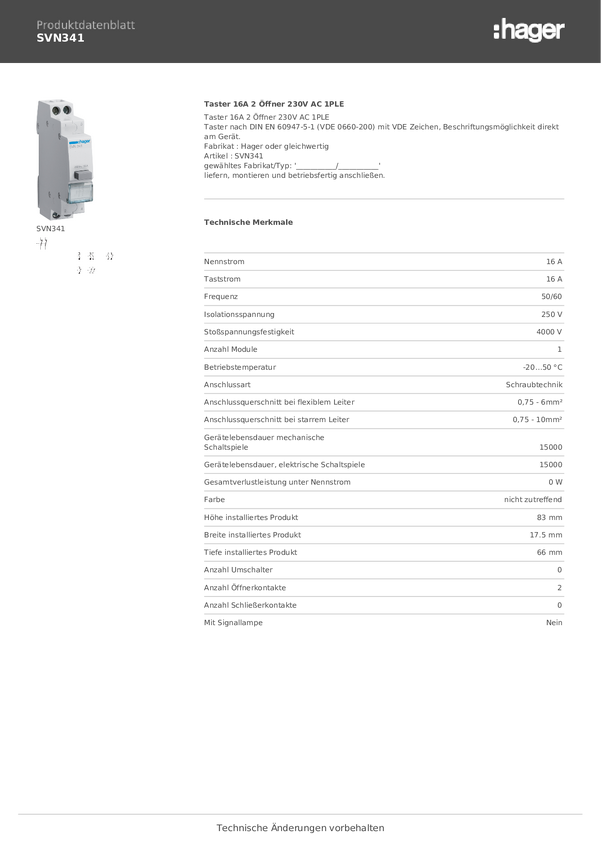 Przełącznik ciśnieniowy Hager SVN342 1 szt.