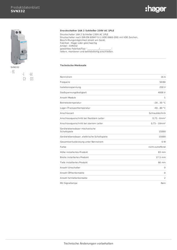 Przełącznik ciśnieniowy Hager SVN332 1 szt.