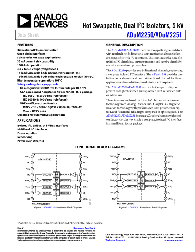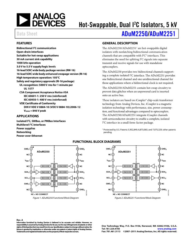 ADUM2251: Hot-Swappable Dual IC® Isolators, 5 kV