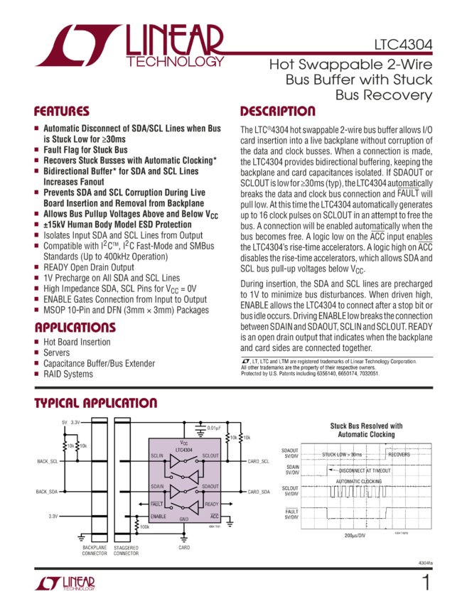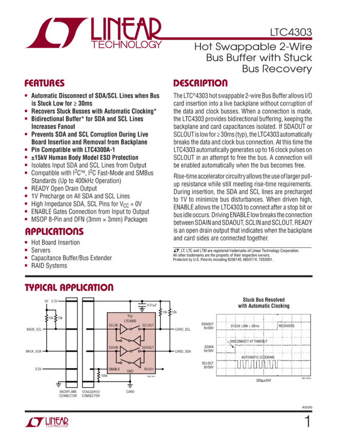 Hot Swappable 2-Wire Bus Buffer with Stuck Bus Recovery