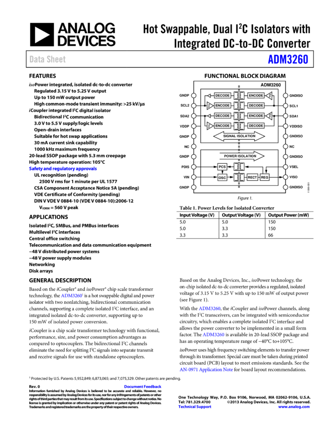 ADM3260: Hot Swappable, Dual IC Isolators with Integrated DC-to-DC Converter