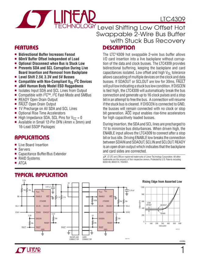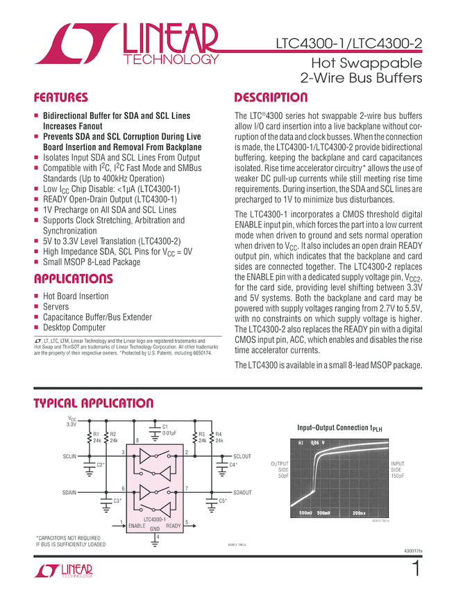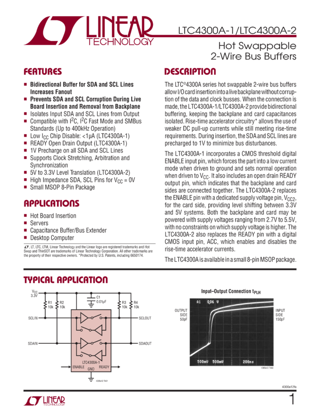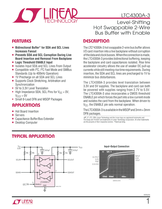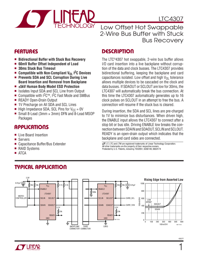 Low Offset Hot Swappable 2-Wire Bus Buffer with Stuck Bus Recovery