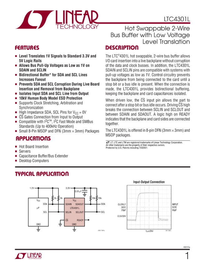 Hot Swappable 2-Wire Bus Buffer with Low Voltage Level Translation