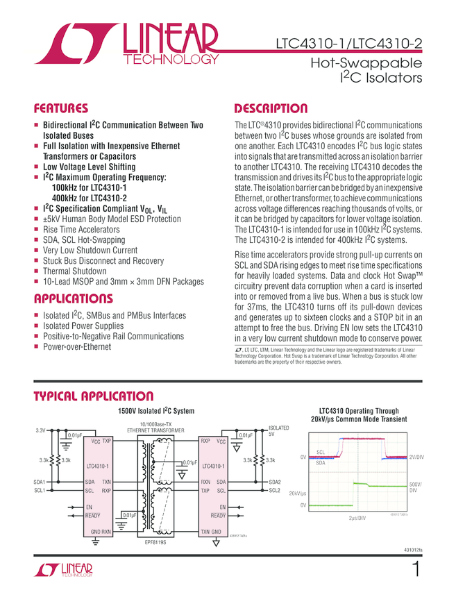 Hot-Swappable Dual IC® Isolators, 5 kV