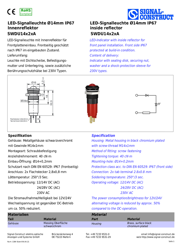 Signal Construct SWDU14024A Lampka sygnalizacyjna LED, 24 V DC/AC, 14 mm