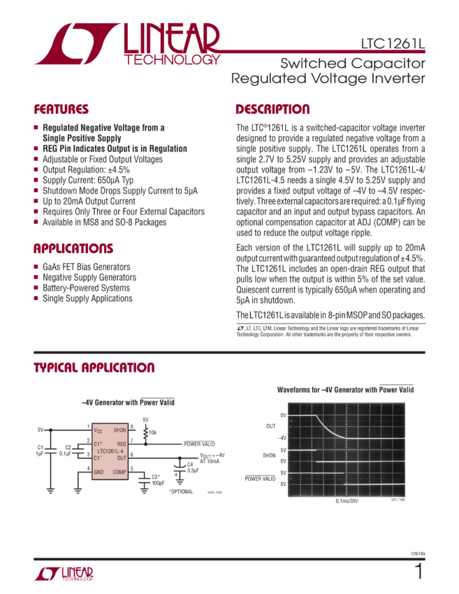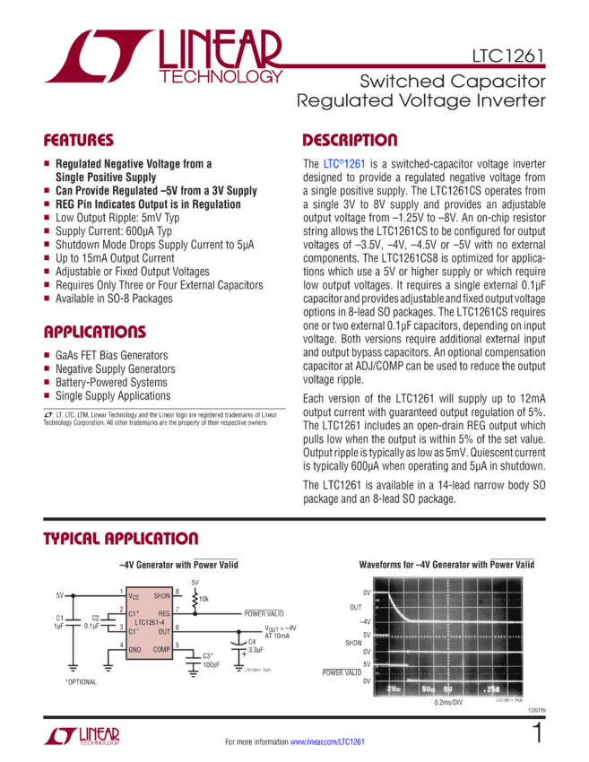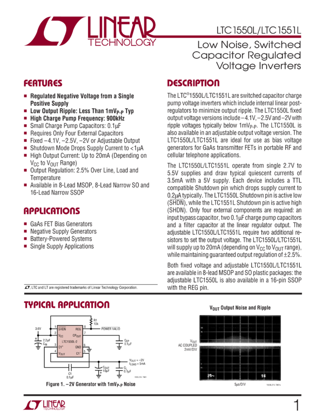 Low Noise, Switched Capacitor Regulated Voltage Inverters