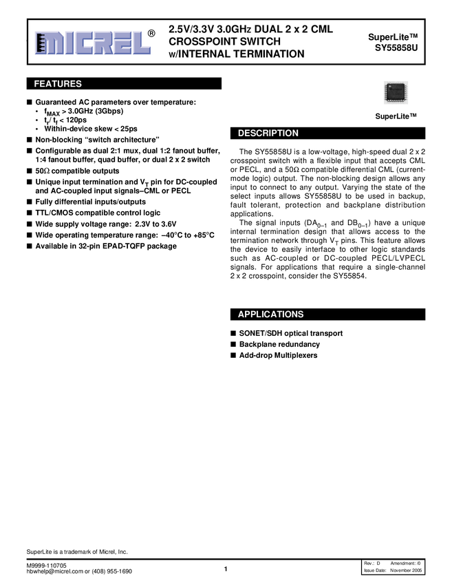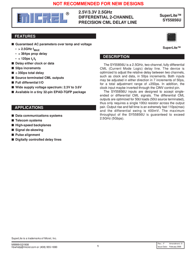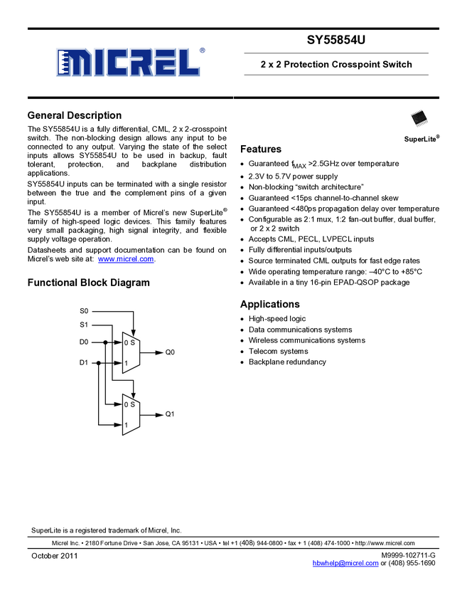 SY55857L - 3.3V, 2.5Gbps Any Input-to-LVPECL Dual Translator