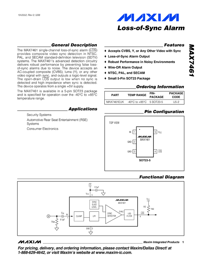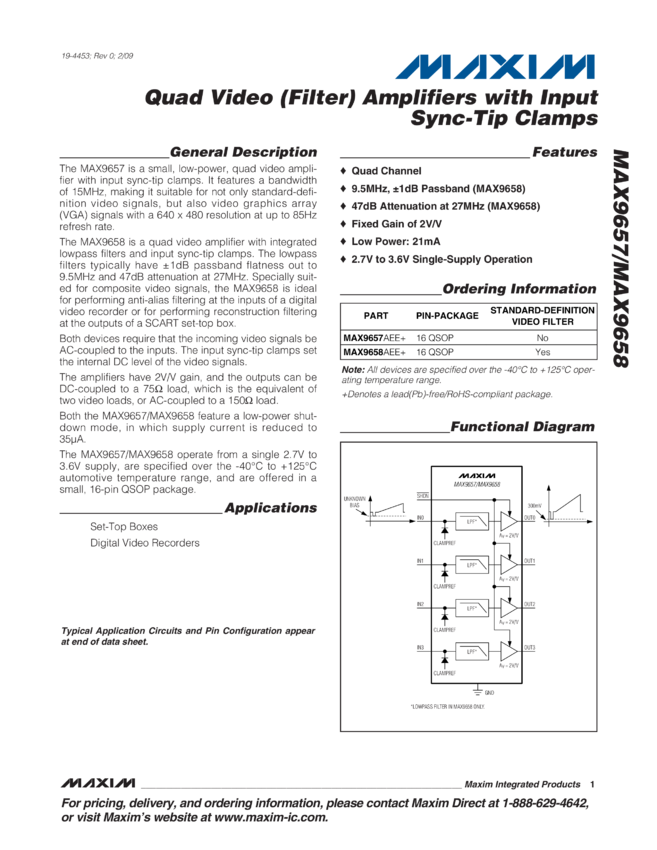 MAX9657, MAX9658 Quad Video (Filter) Amplifiers with Input Sync-Tip Clamps