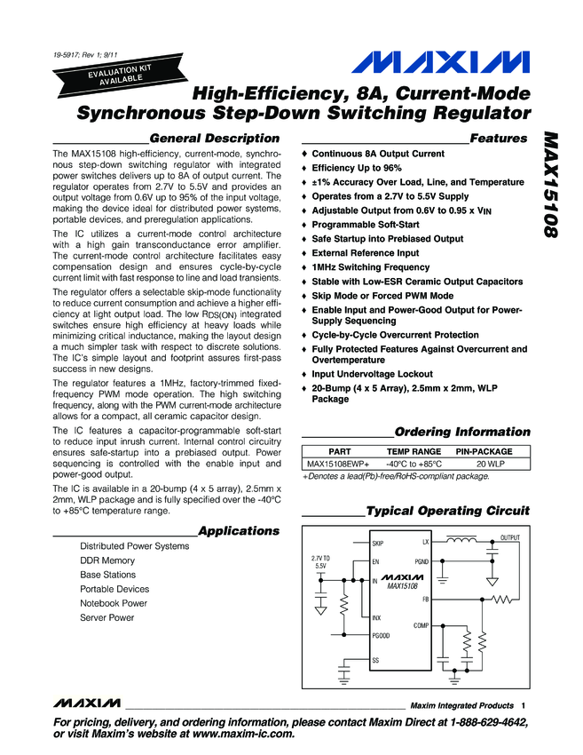 MAX15108 High-Efficiency, 8A, Current-Mode Synchronous Step-Down Switching Regulator