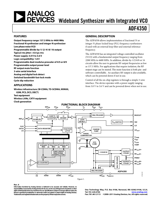 ADF4350: Wideband Synthesizer with Integrated VCO