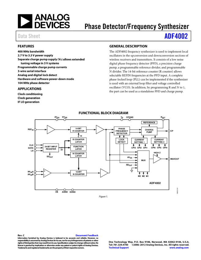 ADF4002: Phase Detector / PLL Frequency Synthesizer