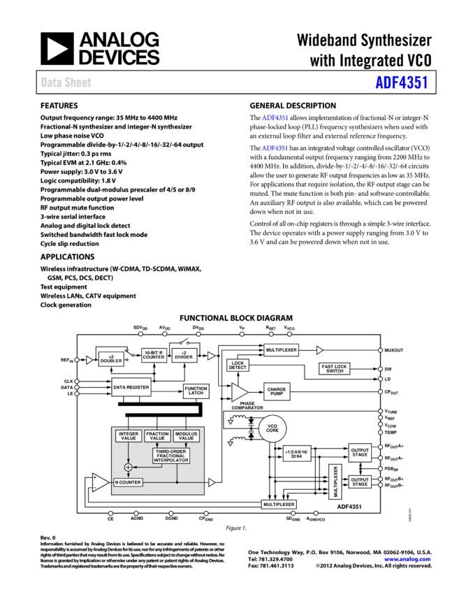 ADF4351: Wideband Synthesizer with Integrated VCO