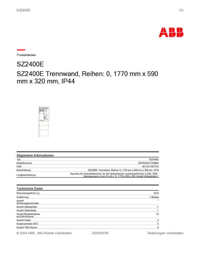 Kompletna obudowa Striebel & John SZ2400E 2CPX043771R9999, 590 mm x 1770 mm x 320 mm, 1 szt.