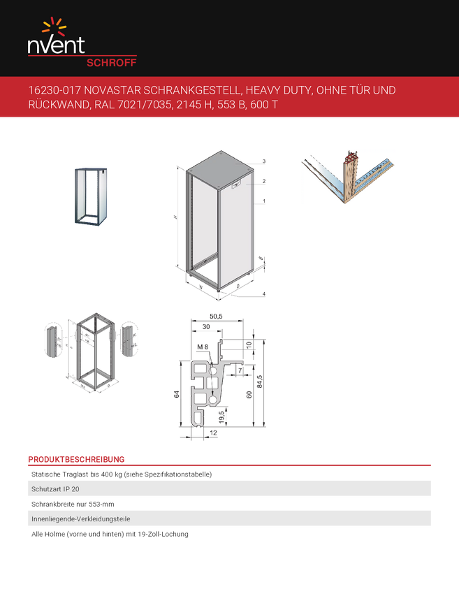 nVent SCHROFF 16230017 Szafka 2145 x 600 szaro-biały (ral 7035) 1 szt.