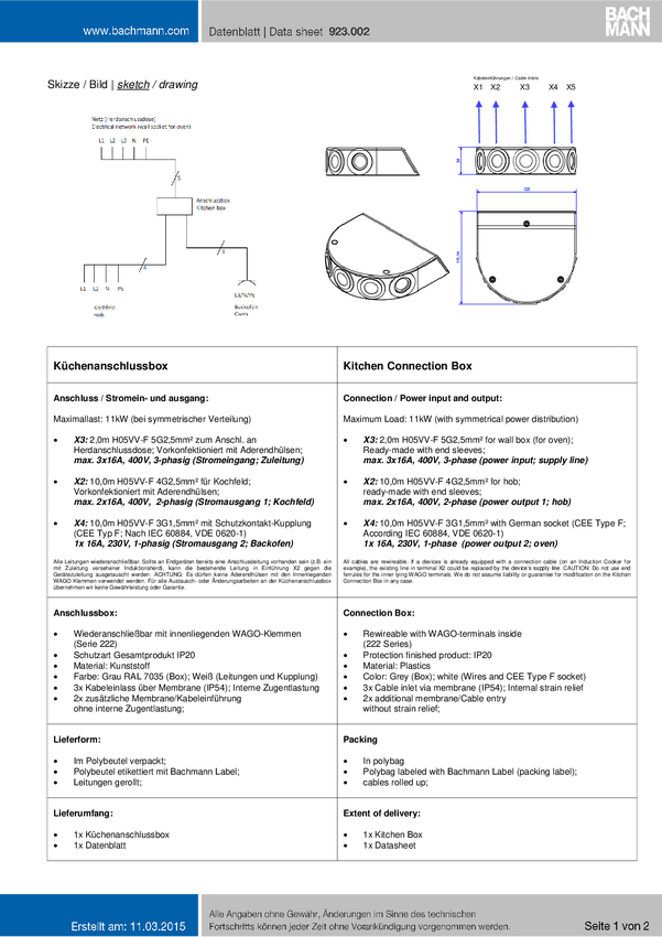 Bachmann 923.002 Gniazdo przyłączeniowe do kuchenki IP20 szaro-biały (ral 7035)