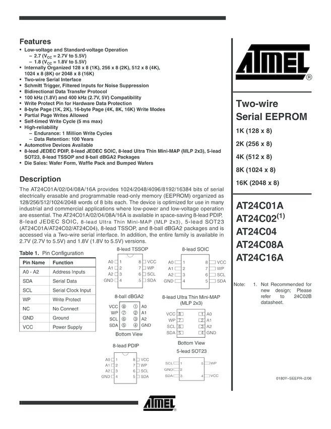 EEPROM, szeregowa, 16Kb, 2Kbx8, SO8