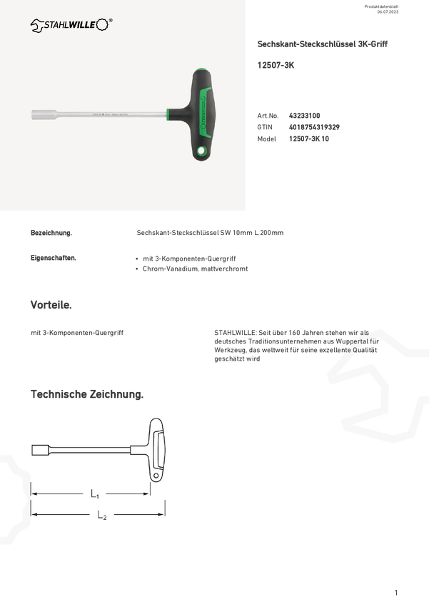Klucz sześciokątny Stahlwille 12507-3K 10 43233100 10 mm