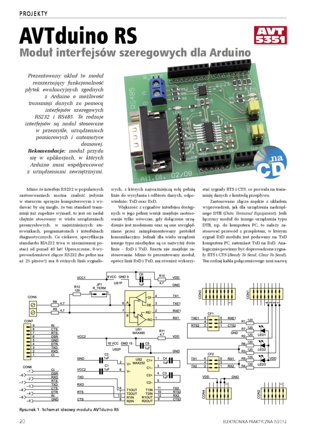 AVT5351 AVTduino RS - moduł interfejsów szeregowych
