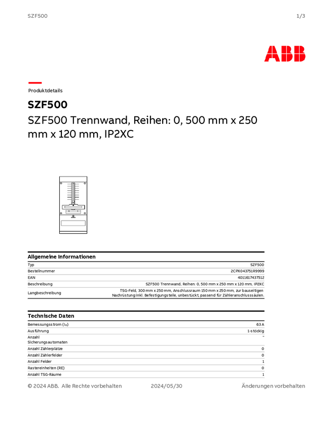 Szafka licznikowa Striebel & John SZF500 2CPX043751R9999, 250 mm x 500 mm , 1 szt.