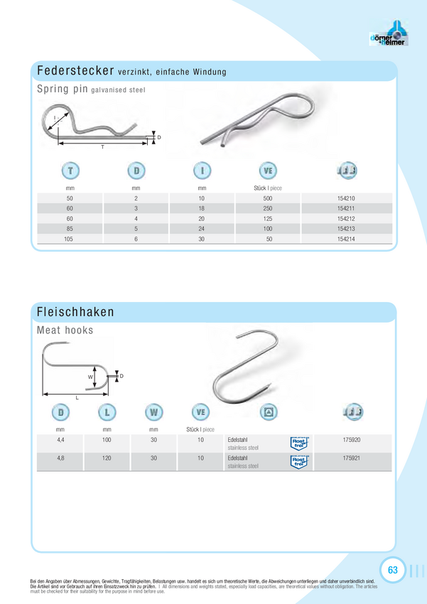 dörner + helmer 4912014 Hak 100 mm Stal szlachetna typu A2 6 szt.