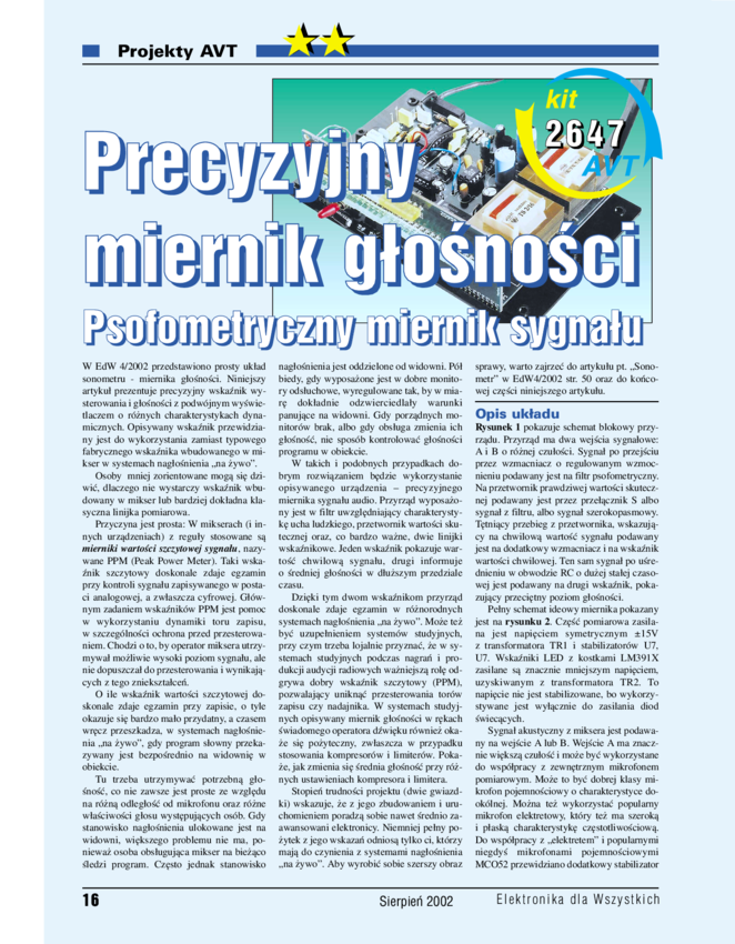 AVT2647 A Precyzyjny miernik głośności - płytka drukowana. AVT2647 OSTATNIE SZTUKI!