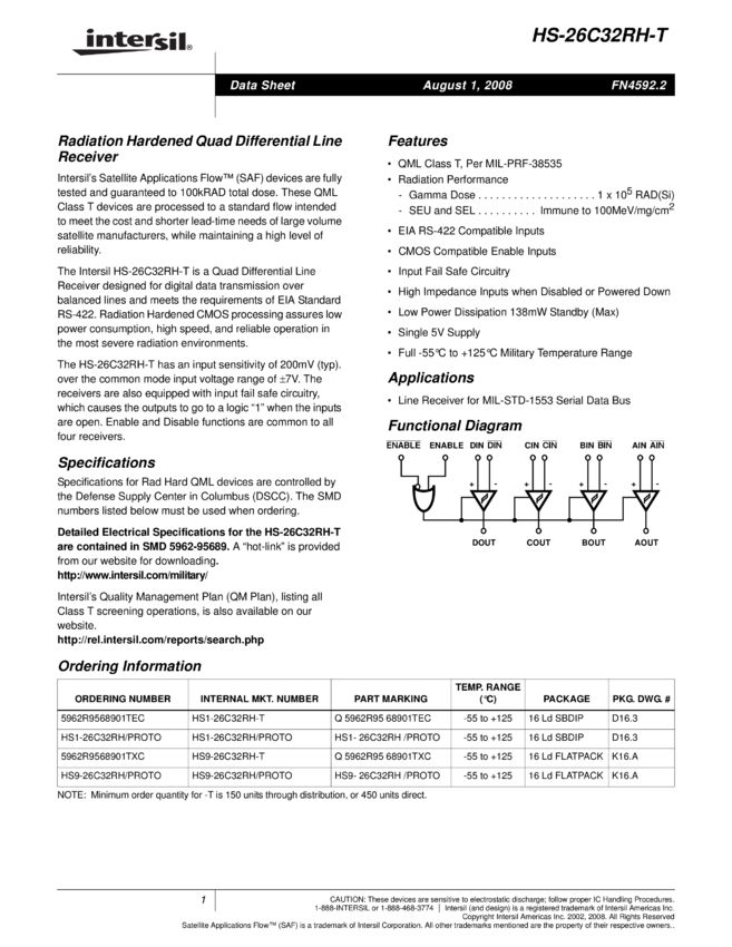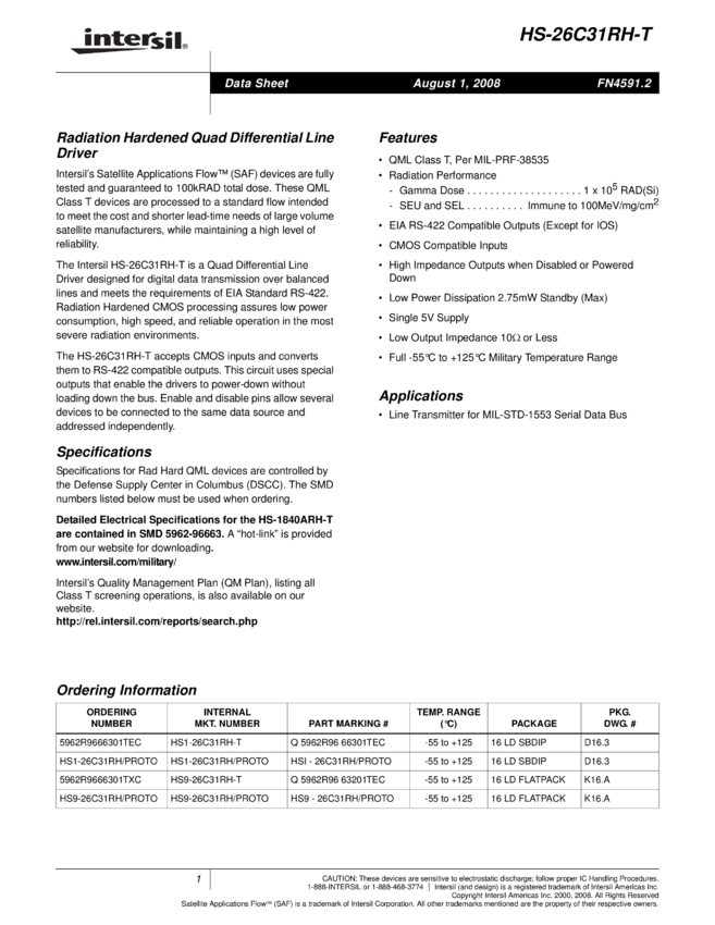 Quad, 5.0V Differential Line Driver, CMOS Enable Class T Datasheet
