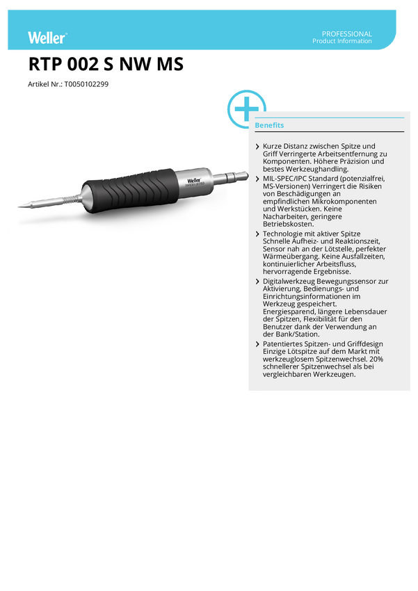 Grot lutowniczy Weller RTP 002 S NW MS T0050102299 1 szt.