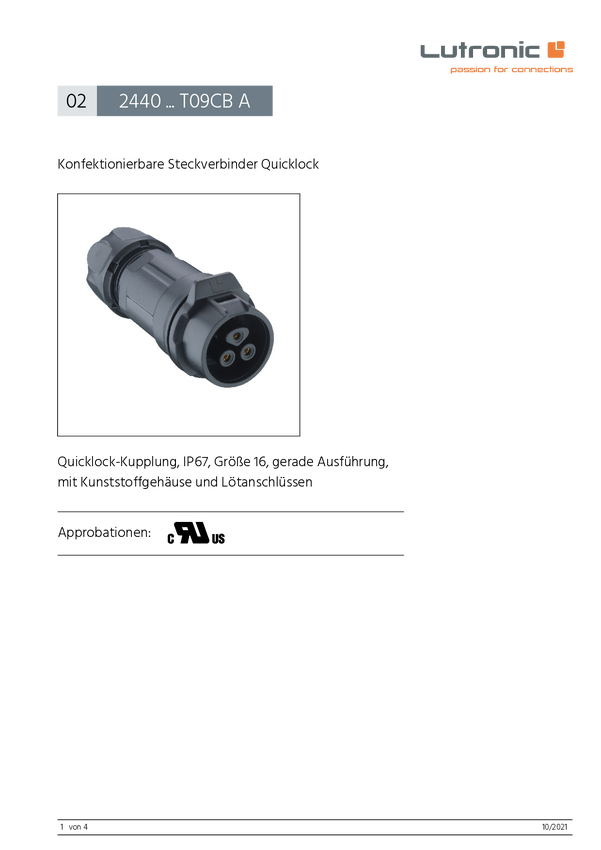 Lutronic 2440 04 T09CB A Złącze okrągłe 2440 ... T09CB A, 1 szt.