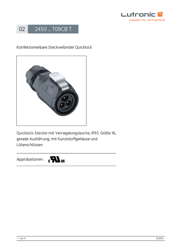 Lutronic 2450 02 T09CB T Złącze okrągłe 2450 ... T09CB T, 1 szt.