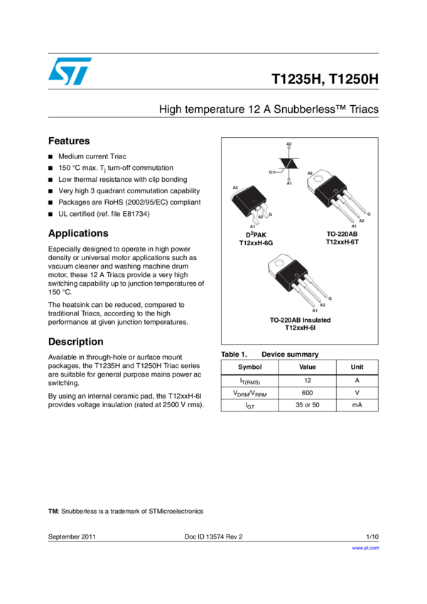 12A standard and Snubberless™ Triacs