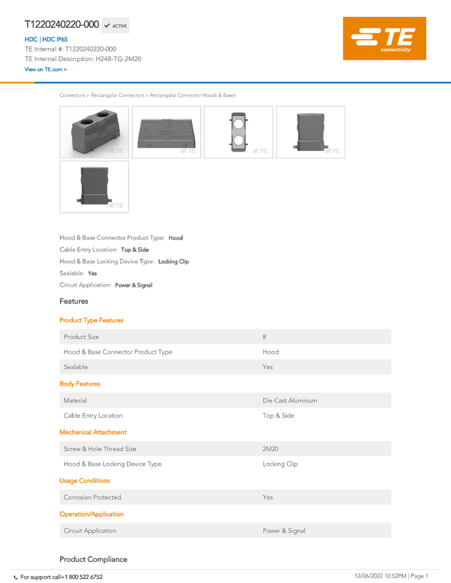 TE Connectivity T1220240220-000 HEAVY DUTY RECT SIBAS TE Connectivity T1220240220-000, 1 szt.
