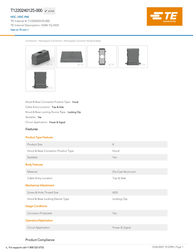 TE Connectivity T1220240125-000 HEAVY DUTY RECT SIBAS TE Connectivity T1220240125-000, 1 szt.