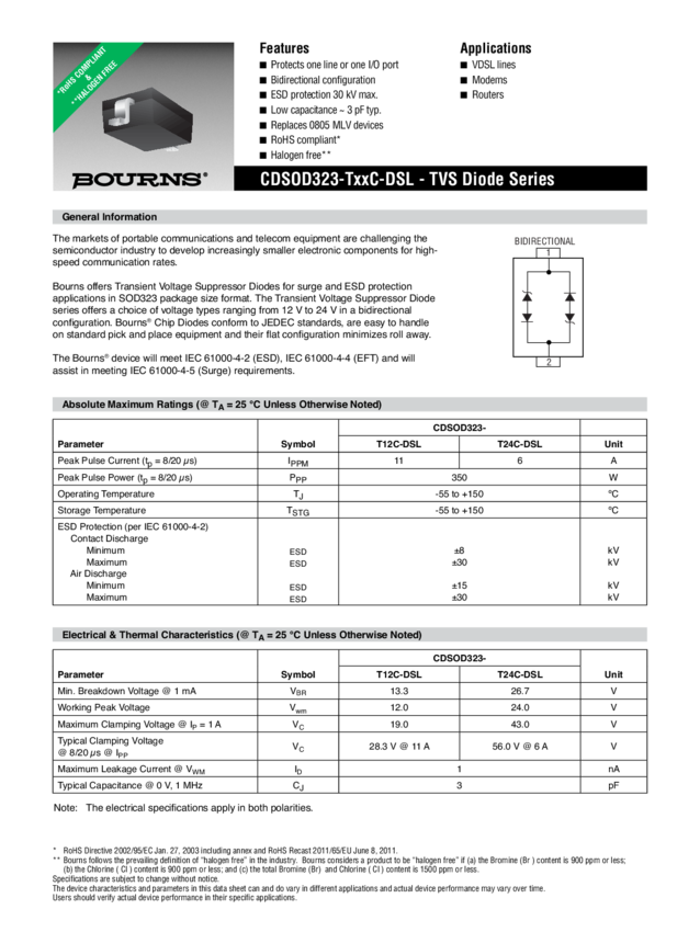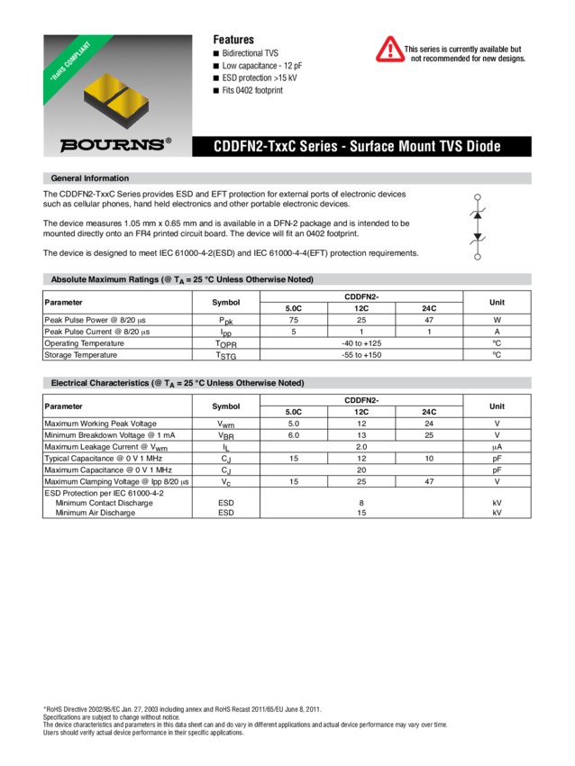 Diode TVS Single Bi-Dir 12V 2-Pin SMD