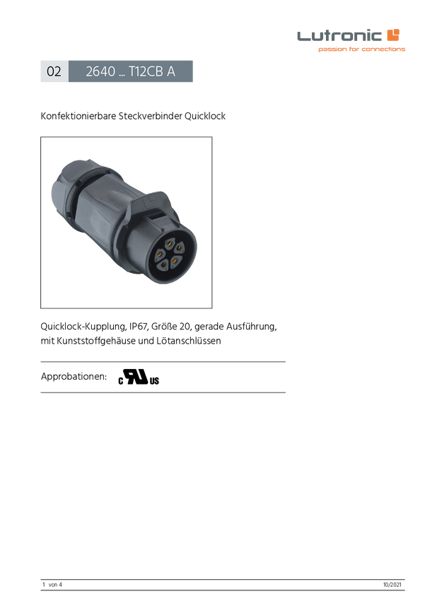 Lutronic 2650 02 T12CB T Złącze okrągłe 2650 ... T12CB T, 1 szt.