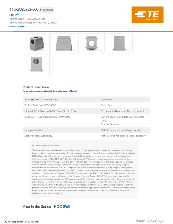 TE Connectivity T13X9323232-000 TE AMP HEAVY DUTY RECT SIBAS, 1 szt.