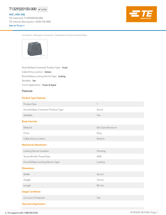 TE Connectivity TE AMP HEAVY DUTY RECT SIBAS T1319320125-000, 1x -02050007146209