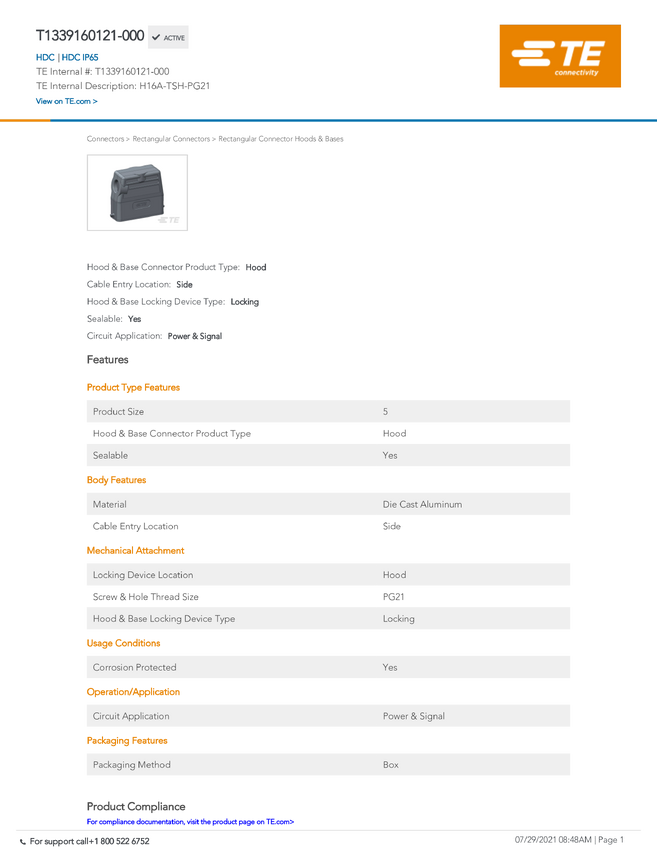 TE Connectivity T1339160121-000 TE AMP HEAVY DUTY RECT SIBAS, 1 szt.