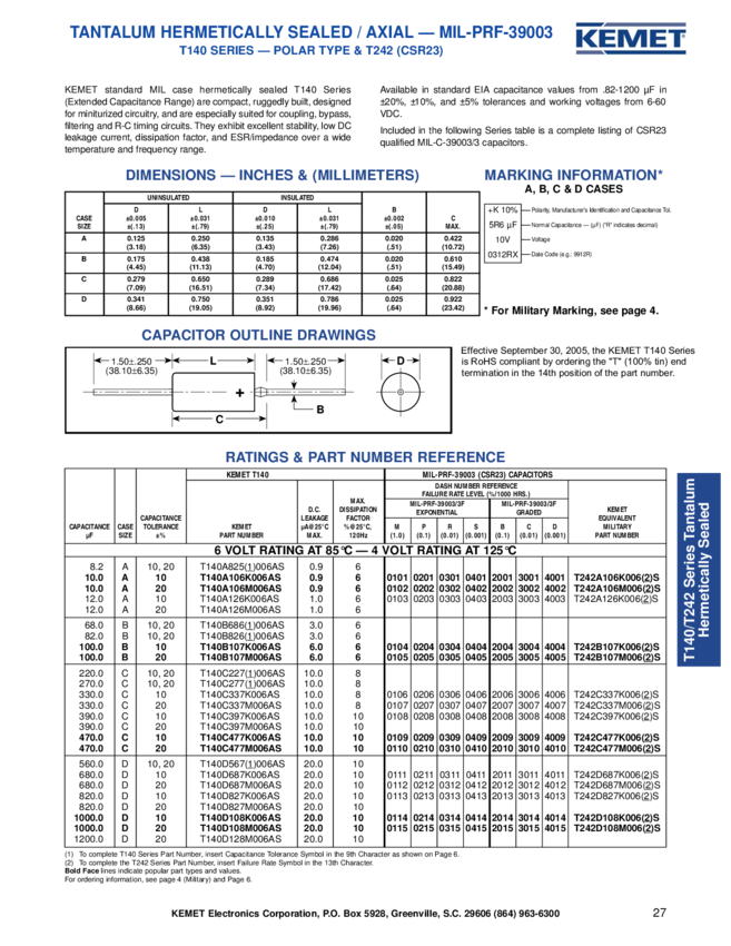 Cap Tant Solid 47uF 35V 10% (7.34 X 17.42mm) Axial 0.8 Ohm 125°C Bulk