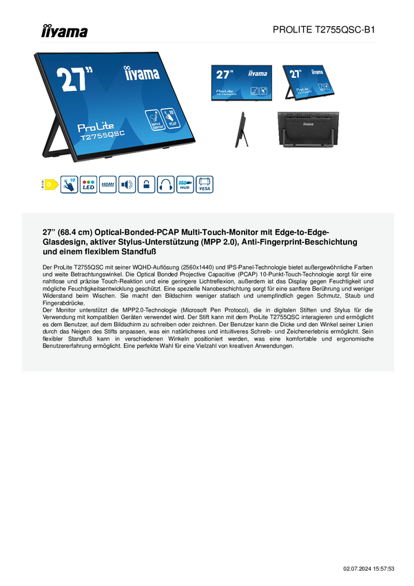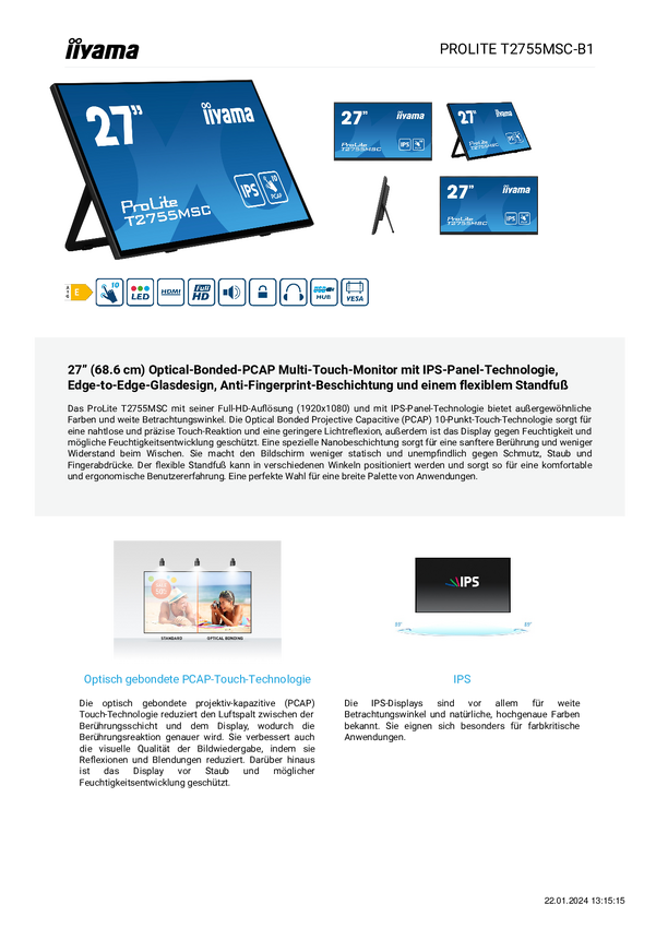 27-calowy IPS Bonded PCAP 10P Touch, MPP2.0