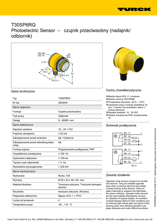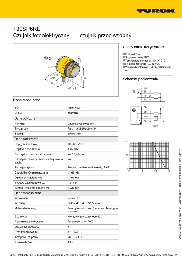 Bezzwrotny czujnik fotoelektryczny Turck T30SP6RE 3037069 1 szt.