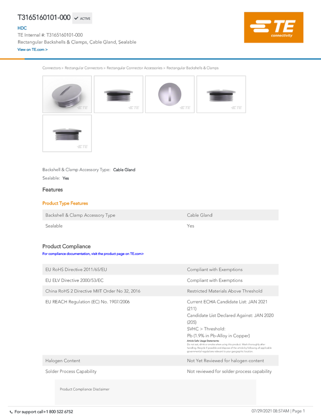 TE Connectivity T3165110101-000 TE AMP HEAVY DUTY RECT SIBAS, 1 szt.
