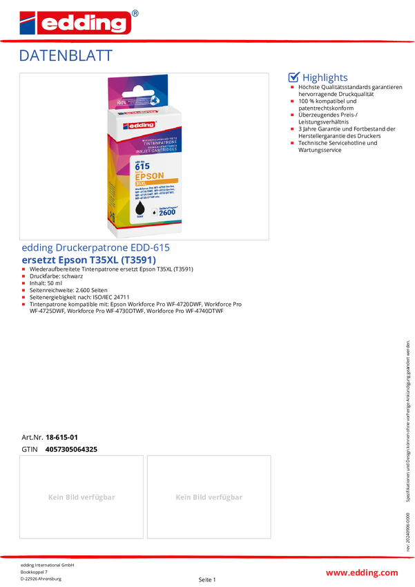 Edding atrament Zamiennik Epson T3591, 35XL zamiennik Czarny EDD-615 18-615-01