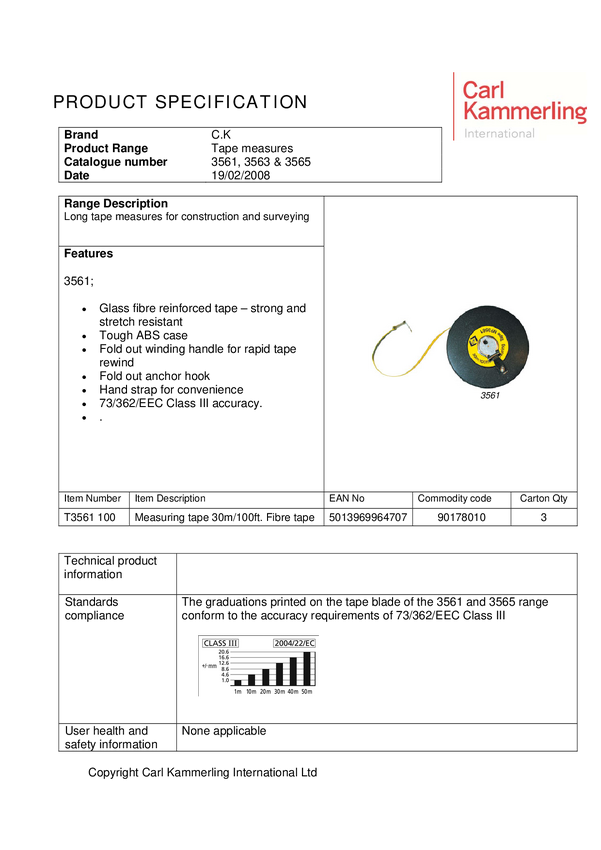 Taśma miernicza C.K neu T3565 330, 100 m