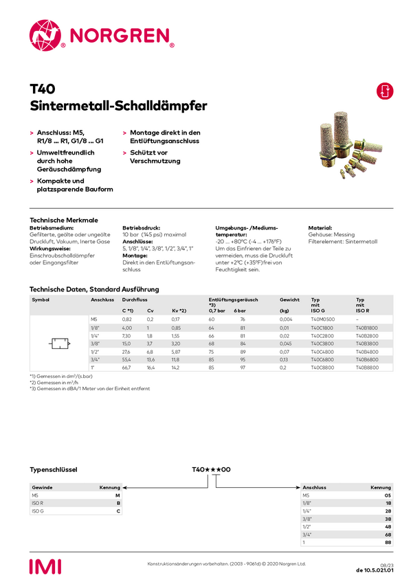 Tłumik sprężonego powietrza IMI NORGREN T40B1800