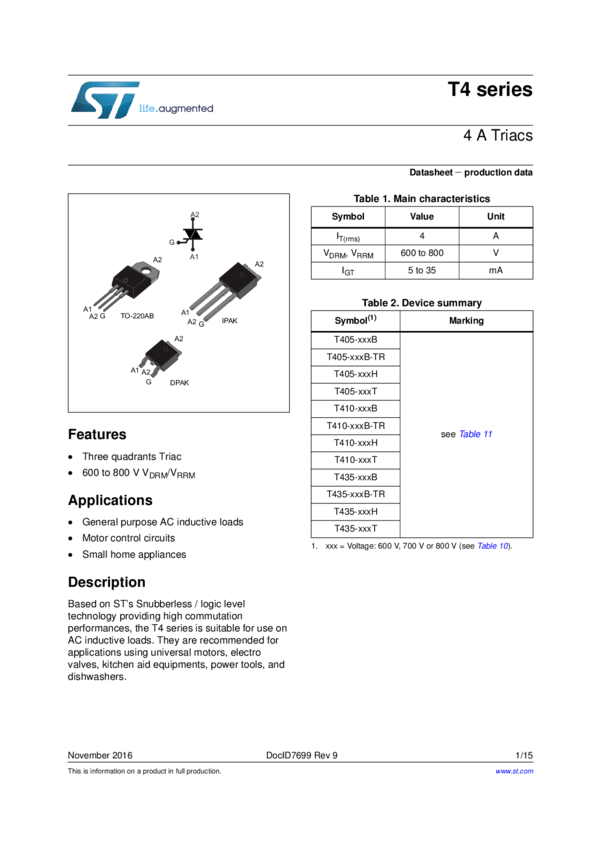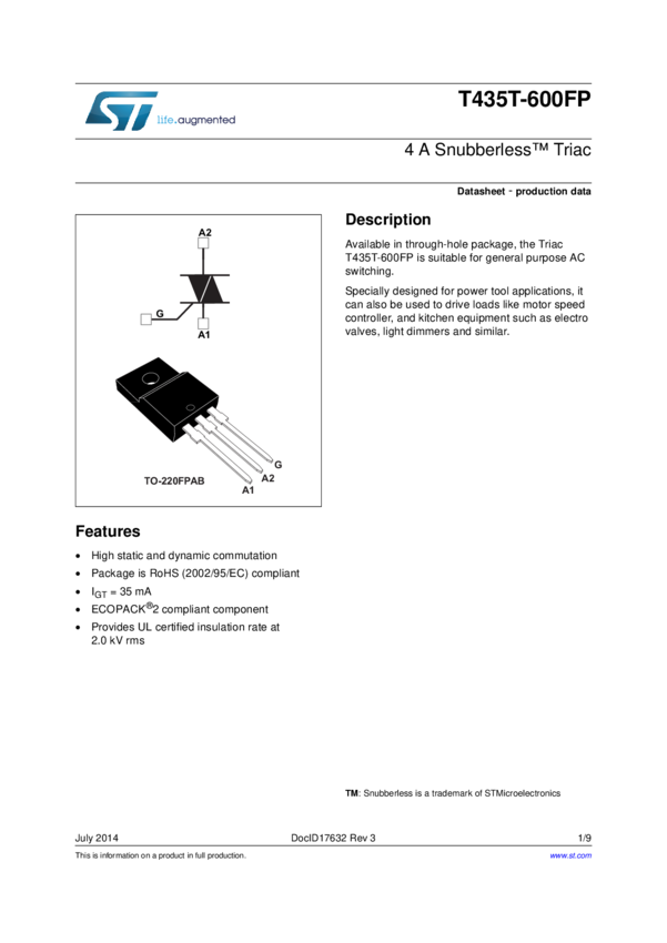 Triak; T435-800B; 4A; 800V; 35mA; DPAK; TO252; SMD; ST Microelectronics; RoHS