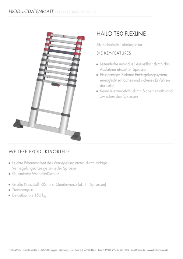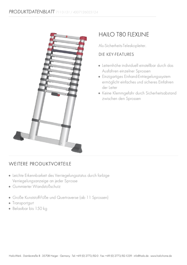 Hailo T80 FLEXLINE 7113111 aluminium Drabina teleskopowa Maksymalna wysokość robocza: 3.95 m srebrny, czarny, czerwony D