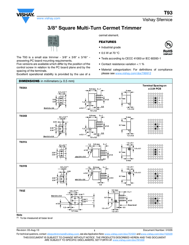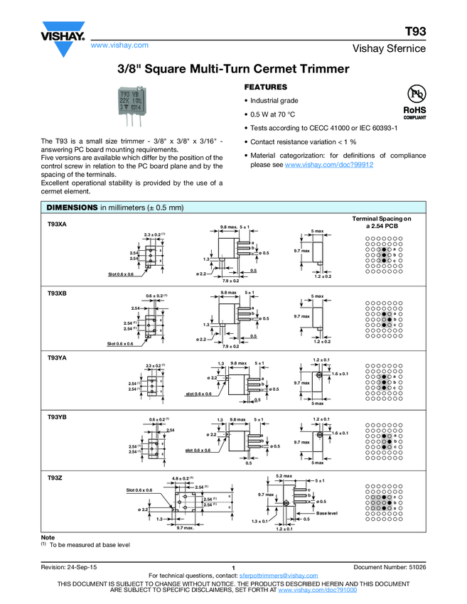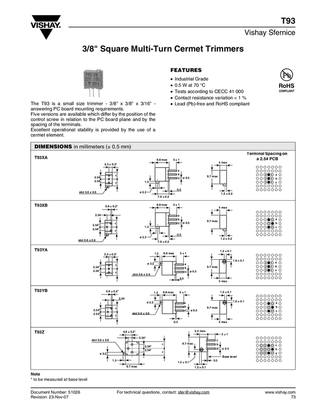 Res Cermet Trimmer 500K Ohm 10% 1/2W 21(Elec)/23(Mech)Turn 2.2mm (9.7 X 5 X 11.1mm) Pin Thru-Hole Tube
