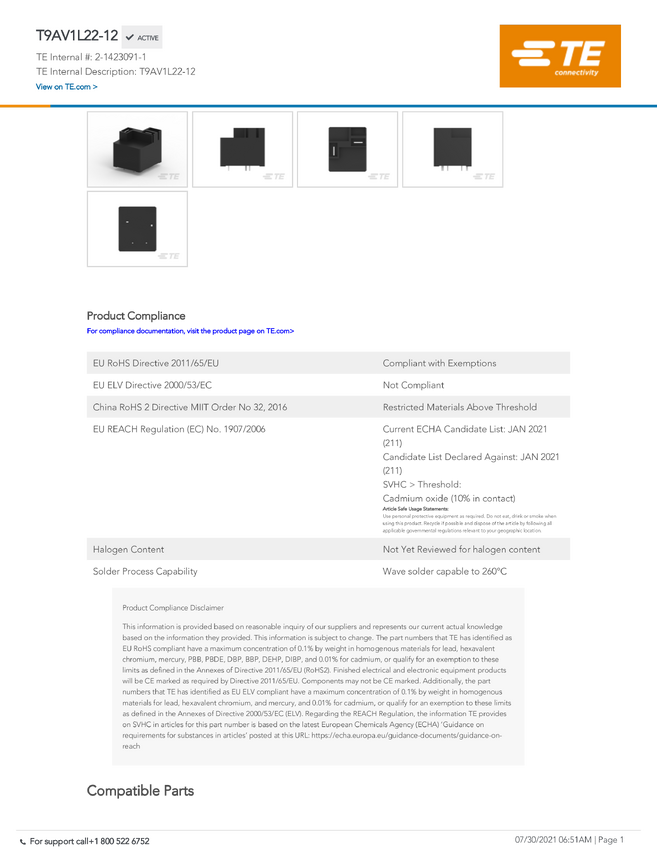 Przekaźnik; T9AS1D22-12; elektromagnetyczny; 12V DC; 30A; 1W; SPST-NO 1 styk wierny; 32,5x27,4x27,9mm; na PCB +konektory 6,35x0,8mm; 1-1419104-7; TE Connectivity; RoHS