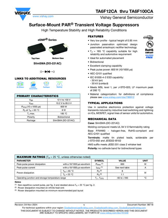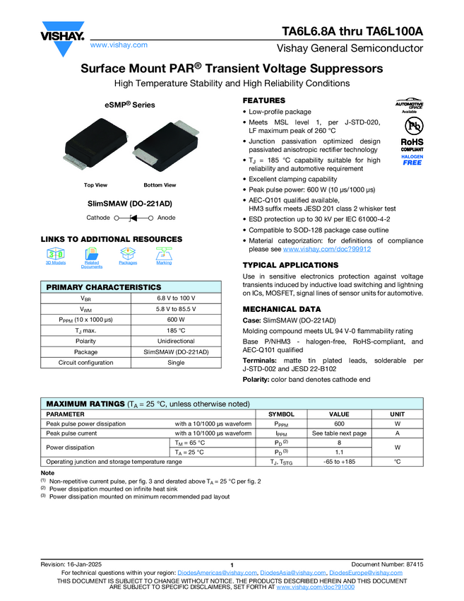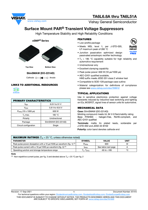 Surface Mount PAR® Transient Voltage Suppressors High Temperature Stability and High Reliability Conditions